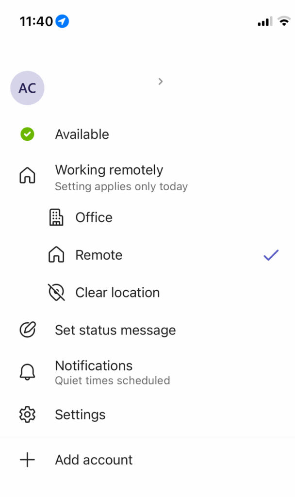 Set your daily work location so colleagues can easily see if you’re in the office or working remotely, simplifying meeting coordination. Update Teams whenever your plans change to keep your status current.